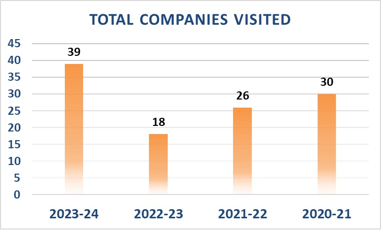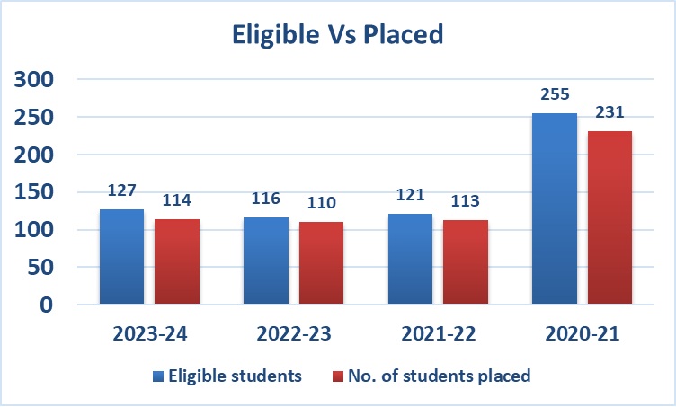 | Year | Total Companies Visited | Eligible students | No. of students placed | Salary (max) LPA |